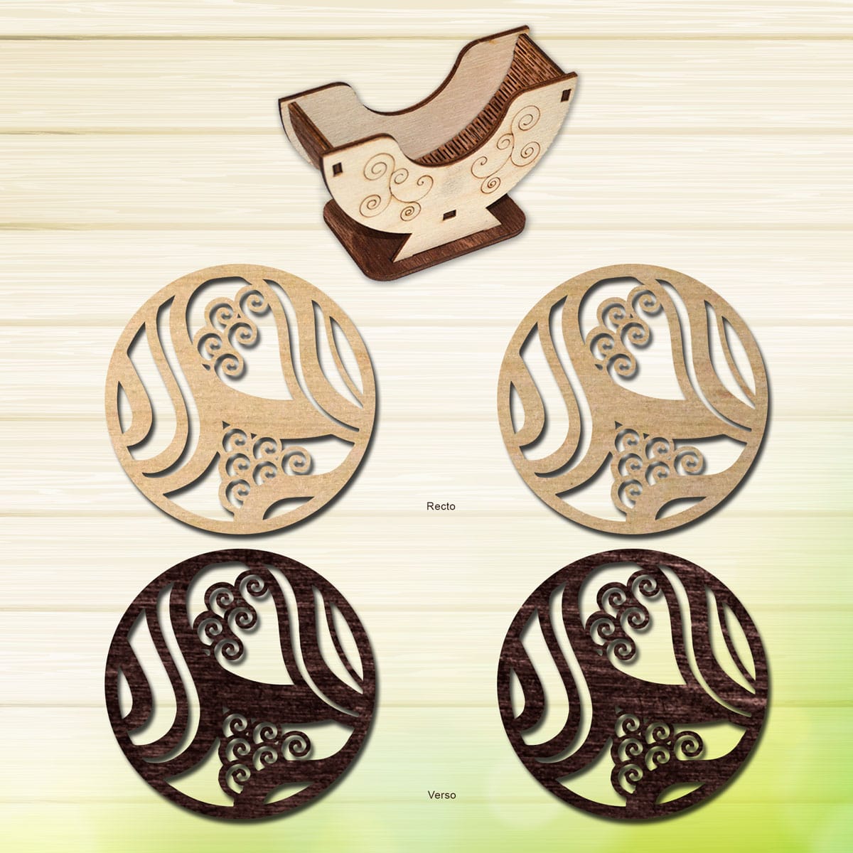 Fabriqué en contreplaqué de bouleau découpé au laser et fini avec un satin clair et lisse. Le Sous-Verre mesure 3,5″ de diamètre. .