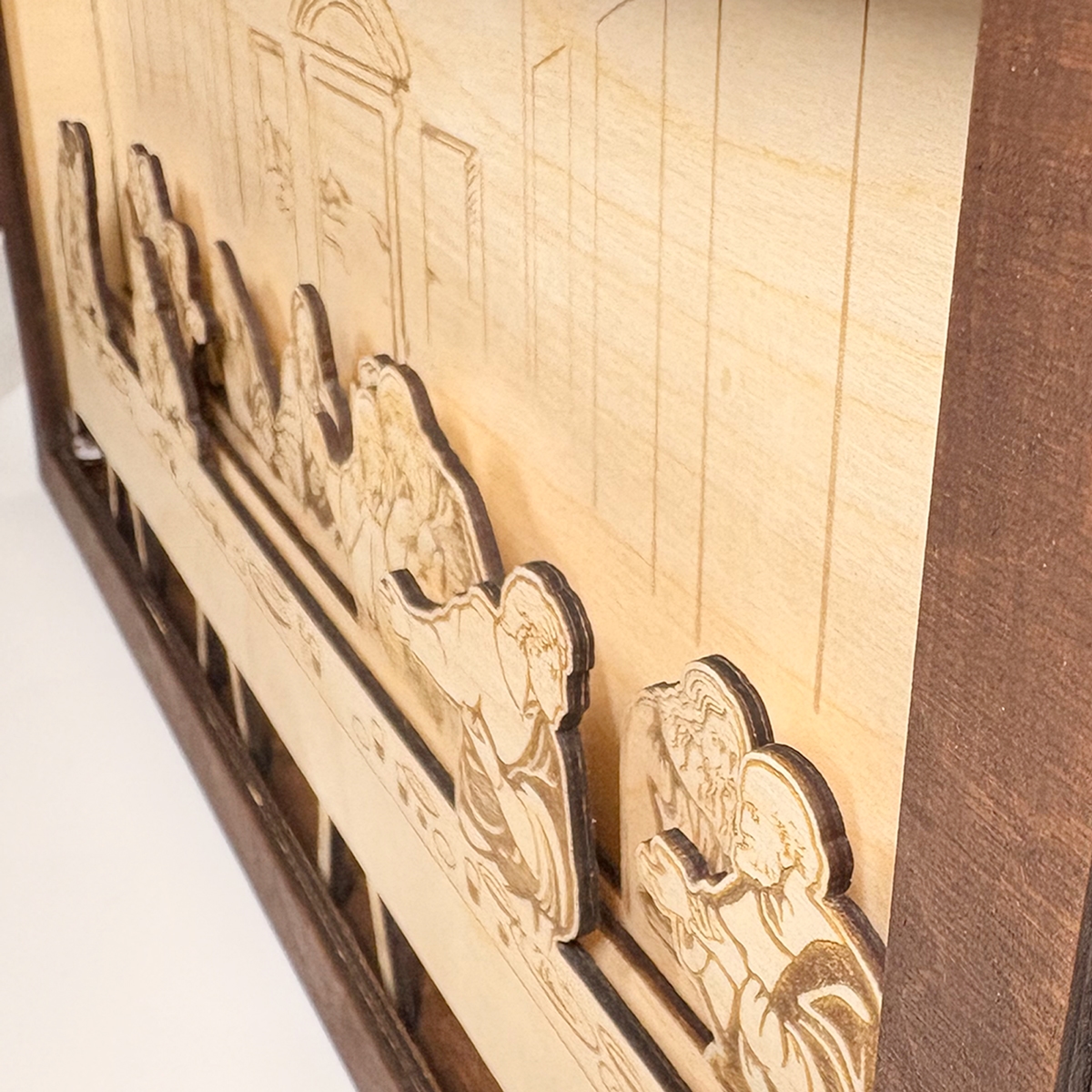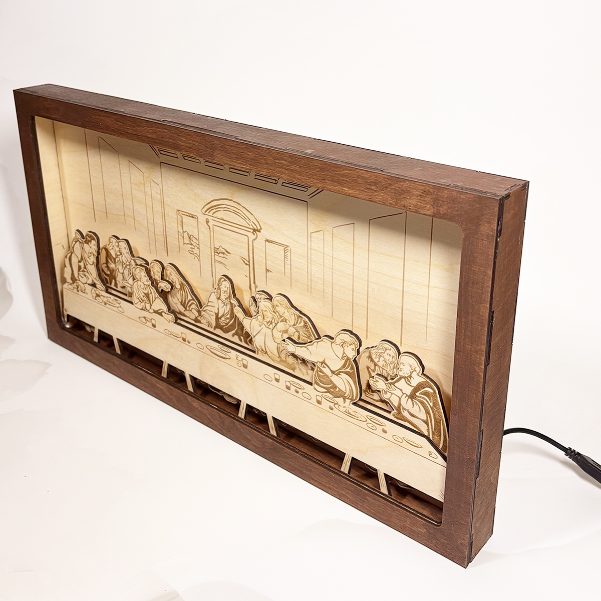 Last supper wall art crafted in stunning 3D laser-cut wood design with integrated LED lighting.