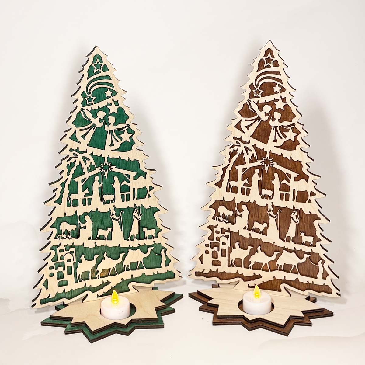 Each wooden Christmas nativity tree is created using advanced laser-cutting technology, allowing for exceptional precision and intricate detail. The laser-cut process ensures that every figure, line, and shape is clean and consistent, creating a refined and high-quality finish.